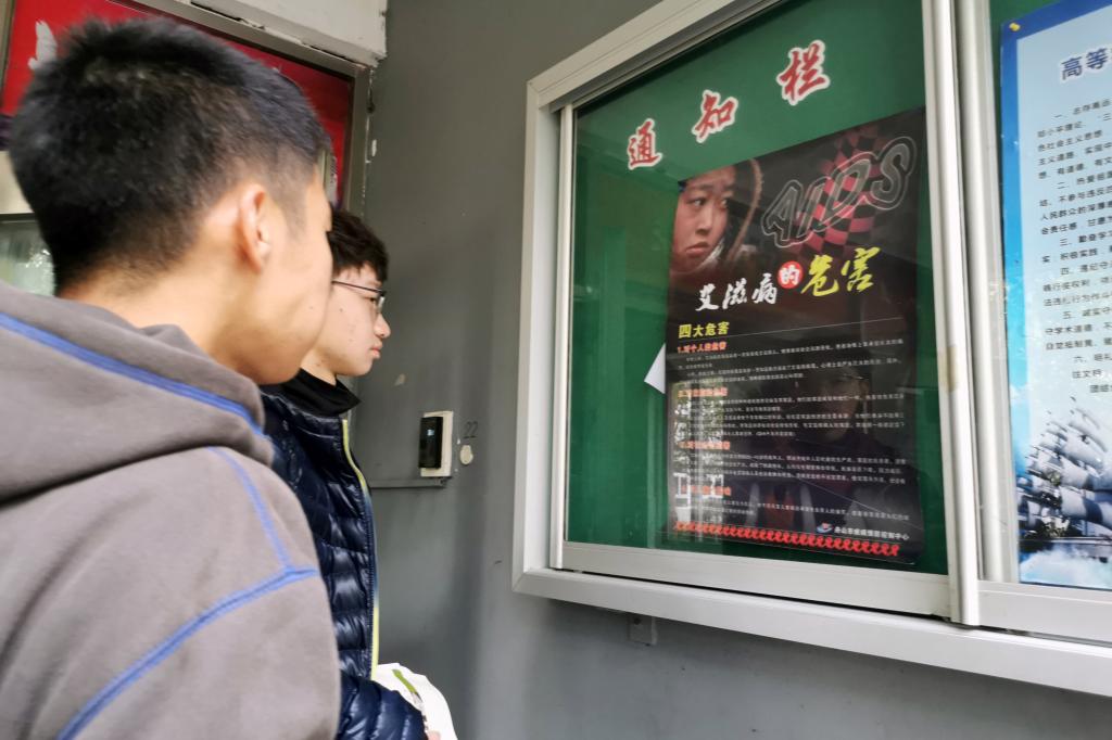 11月22日,船舶工程学院分会志愿者在学校教学楼、寝室楼张贴了“防艾”宣传海报,让更多师生能够了解预防艾滋病的相关知识。