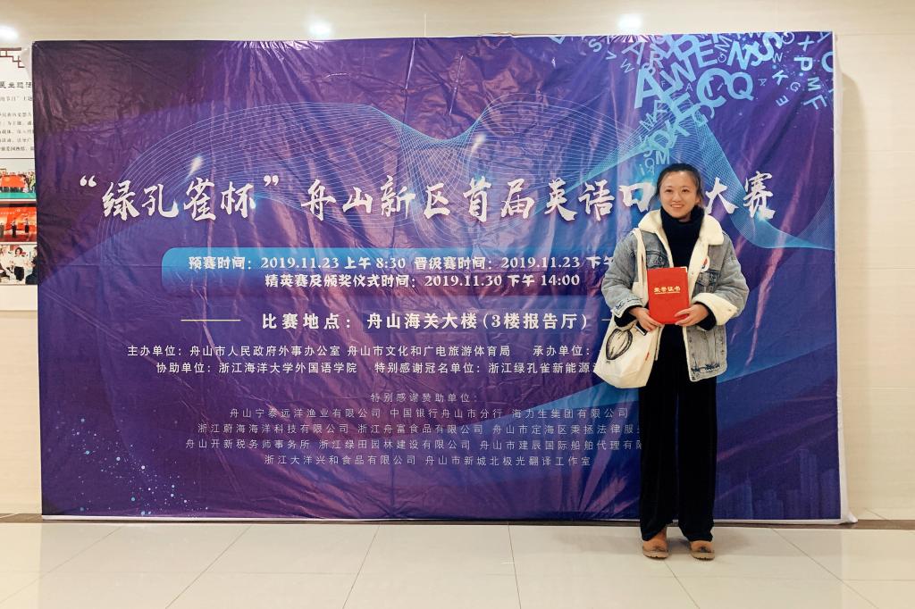 11月30日下午,在舟山海关大楼报告厅举行的“绿孔雀杯”舟山新区首届英语口译大赛决赛中,我校船舶工程学院辅导员吴淑一荣获二等奖。本次比赛由舟山市人民政府外事办、舟山市文化和广电旅游体育局主办,包括为期2周的淘汰赛、晋级赛、精英赛等激烈角逐,旨在提高外语交流水平,促进舟山新区经济发展和国际交流,营造对外开放的优化软环境。(图文/林芷伊)