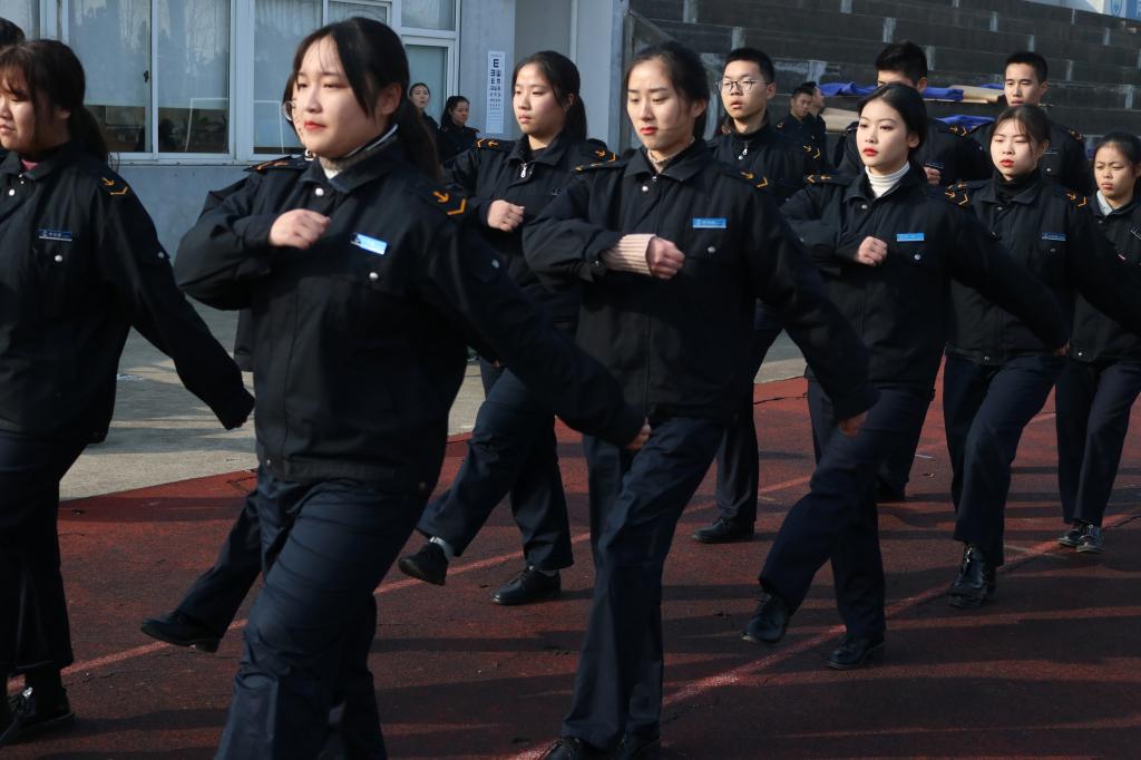 12月4日下午,航海工程学院准军事化技能大比武在田径场隆重举行。
