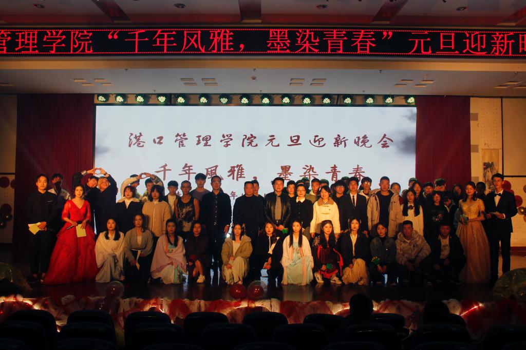 12月12日晚,港口管理学院“千年风雅,墨染青春”2019元旦迎新晚会在图书馆报告厅隆重上演。校党委委员、工会主席刘相,港口管理学院党政班子与500余名学生齐聚一堂,共享这场视听盛宴。
