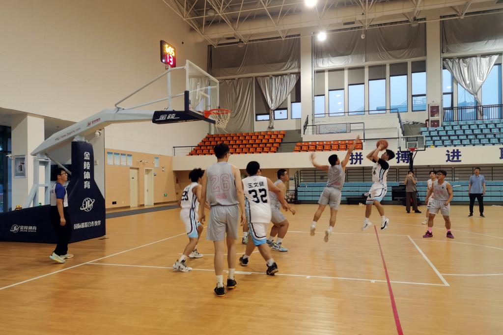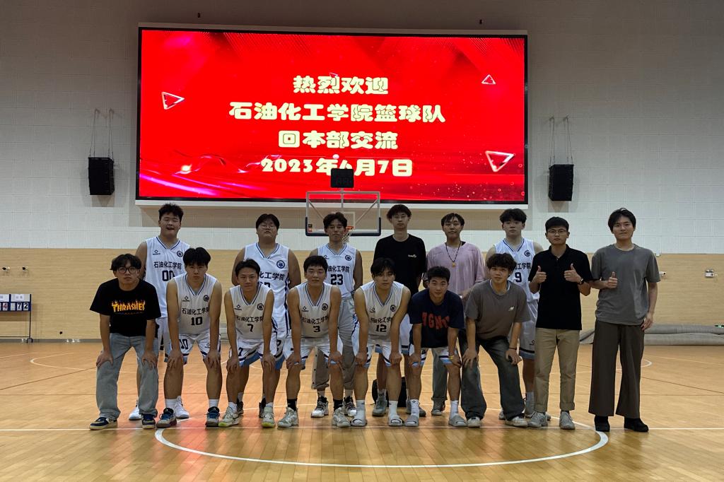 石油化工学院男子篮球队抵达本部后受到了热烈欢迎,比赛在友好的氛围中开始。队员们在场上奋力拼搏、团结协作,以饱满的热情和高昂的意志投入比赛,多次通过默契的配合取得进球。