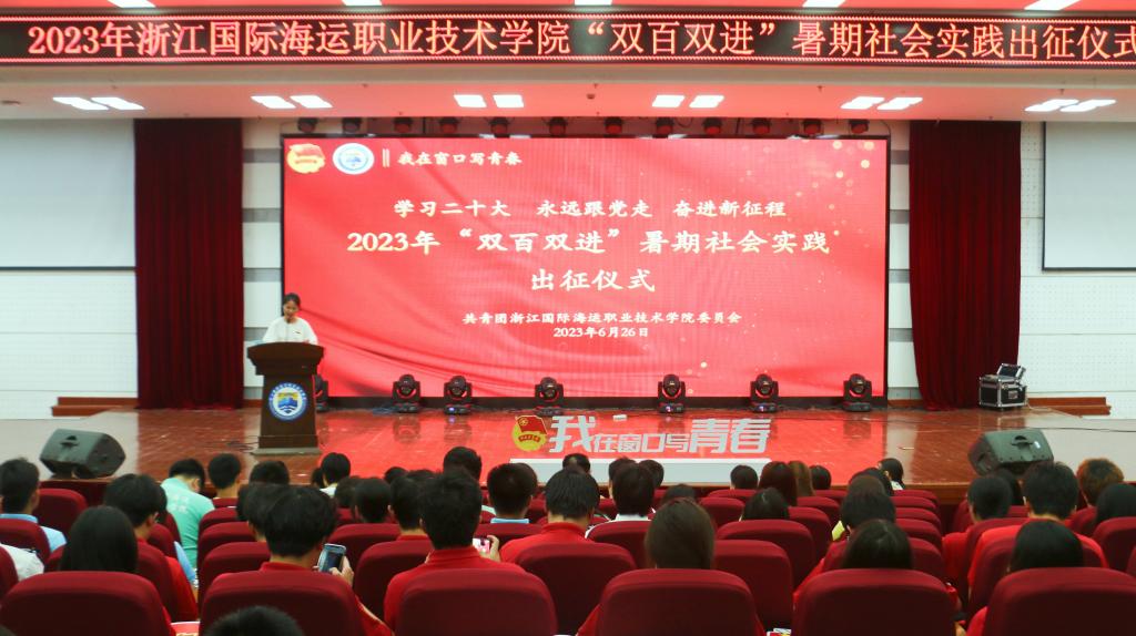 学习二十大,永远跟党走,奋进新征程!6月26日,学校2023年“双百双进”暑期社会实践出征仪式在图书馆报告厅隆重举行。校党委副书记孔志光、各二级学院党总支(直属党支部)副书记、分团委书记(负责人)以及暑期社会实践指导教师和学生代表等100余人参加出征仪式。仪式由校团委副书记余娜娜主持。