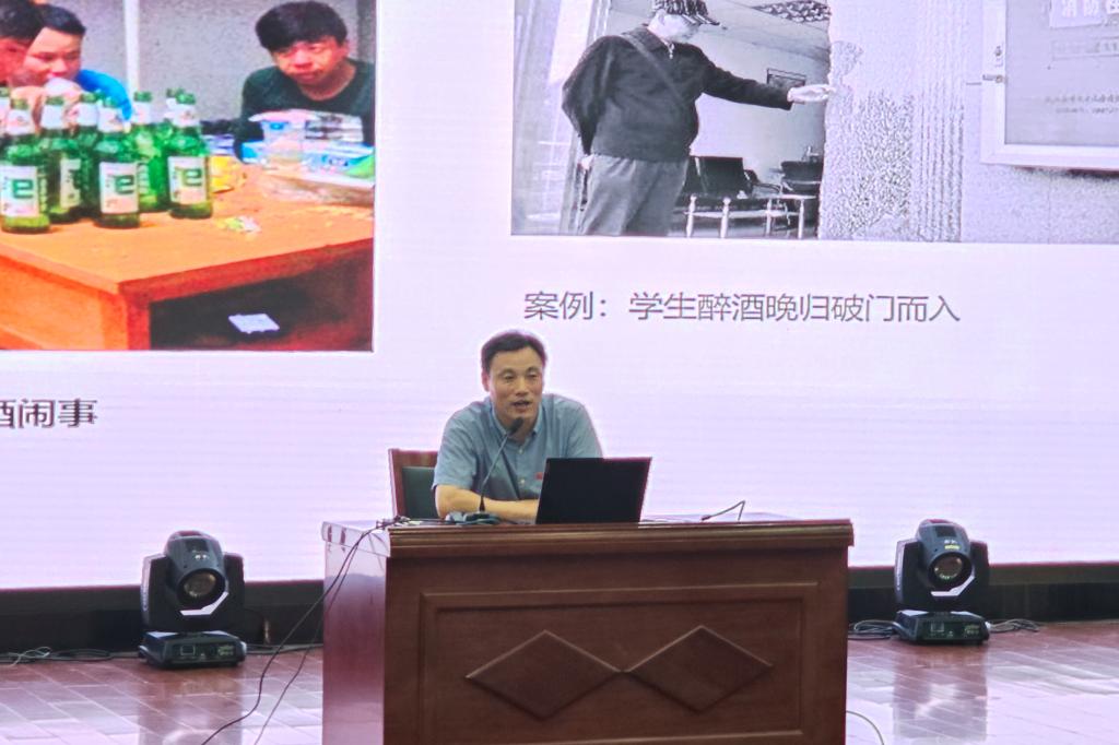 为了加强校园安全管理,增强学生安全防患意识,提高自我救护能力,铸牢安全防线,9月19日,现代港口贸易学院在图书馆四楼报告厅召开2023级学生安全教育大会,学院党总支书记吴平波、党总支副书记傅红波及相关辅导员参加会议。
