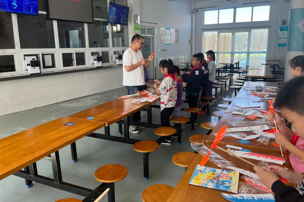 为提升全民科学素质,助力科技自立自强,10月18日,海洋装备工程学院党员教师卓宏明带领无人机社团的志愿者们,赴舟山第一小学“送教上门”开展无人机公益科普活动,科普助“双减”。