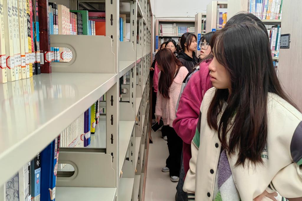 入馆教育实地观摩中,图书馆老师们带领2023级新生参观图书馆特藏室、二三楼书库、图书馆数据库……从图书馆概况、四库全书的阅览,校园一卡通的使用方法到图书的借还规则等,进行了深入细致的教育引导,使新生对学校图书馆的基本概况、图书馆服务、图书馆检索系统以及馆藏资源的利用有了全面的了解。