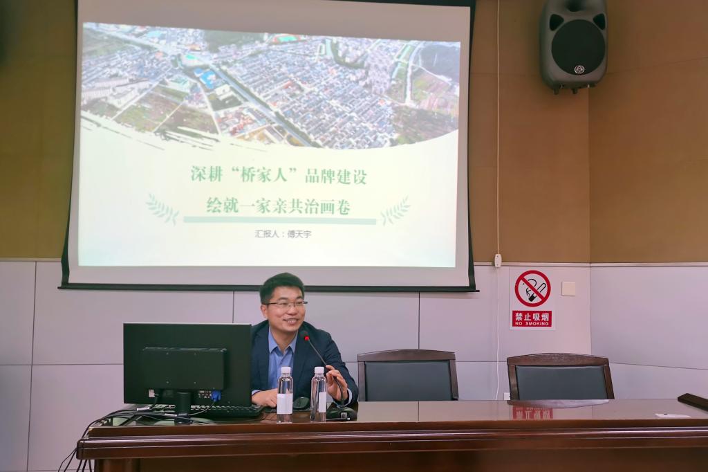 在课堂上,傅天宇书记和老师们分享了一个基层党支部书记的初心和使命,以“深耕‘桥家人’品牌建设 绘就一家亲共治画卷”为主题,从凝心聚力党群共建“桥家人”特色品牌、敢做敢试党群共创“好岑光”共富工坊、以民为本党群共谋“一家亲”幸福邻里三个角度生动讲述了桥头村的转变历程。在党的坚强领导下,桥头村民的获得感、幸福感、安全感明显提升,村容村貌和生产生活条件改善显著,村民生活更加宽裕。桥头村也先后荣获全国抗震救灾示范村、浙江省文明村等荣誉称号。
