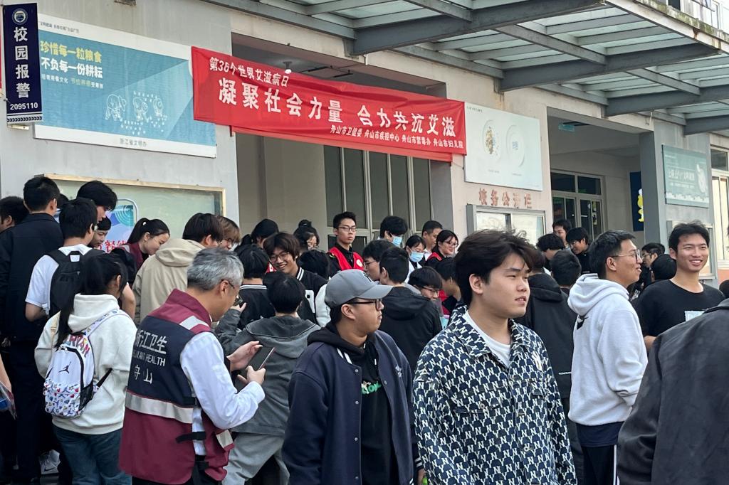 11月23日中午,后勤产业处邀请了舟山市疾病预防控制中心、舟山市禁毒办、舟山市妇幼保健院在学生食堂一楼北门通过发放各类宣传资料、艾滋病血检试剂盒、观看毒品样品等形式开展了世界艾滋病日宣传。