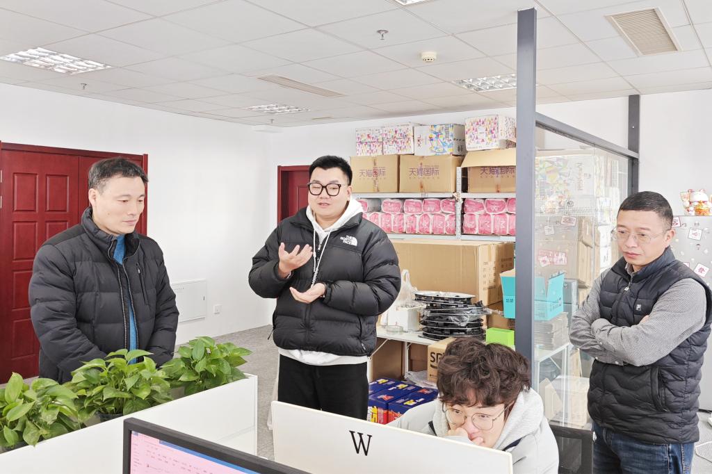 12月21日上午,现代港口贸易学院党总支书记吴平波带队走访舟山市跨境电商产业园,并看望在园区企业的实习学生。