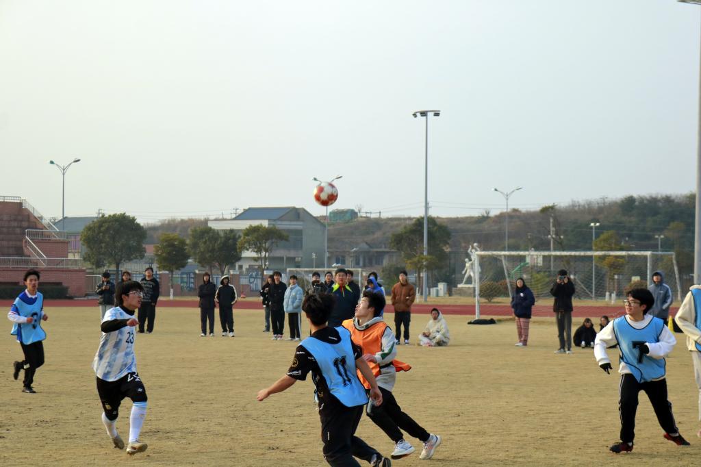 1月3日,决赛在岱山校区操场拉开帷幕,比赛场上双方队员你追我赶,对阵激烈。41分钟时,22石化“软脚虾队”先进一球以1:0领先。下半场易边再战,22石化“软脚虾队”乘胜追击、继续反攻防守,将优势扩大至3-0。最后22石化“软脚虾队”以3比0的比分击败22应化“赤足队”成为冠军。