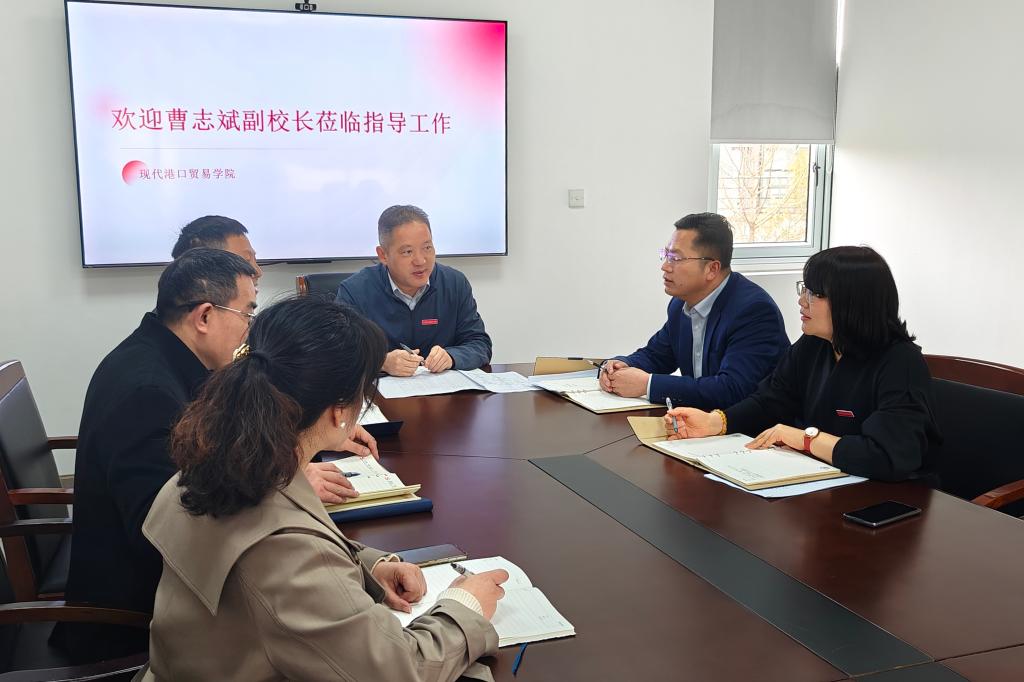 3月29日上午,校党委委员、副校长曹志斌到现代港口贸易学院调研指导工作,现代港口贸易学院党政班子参加座谈。