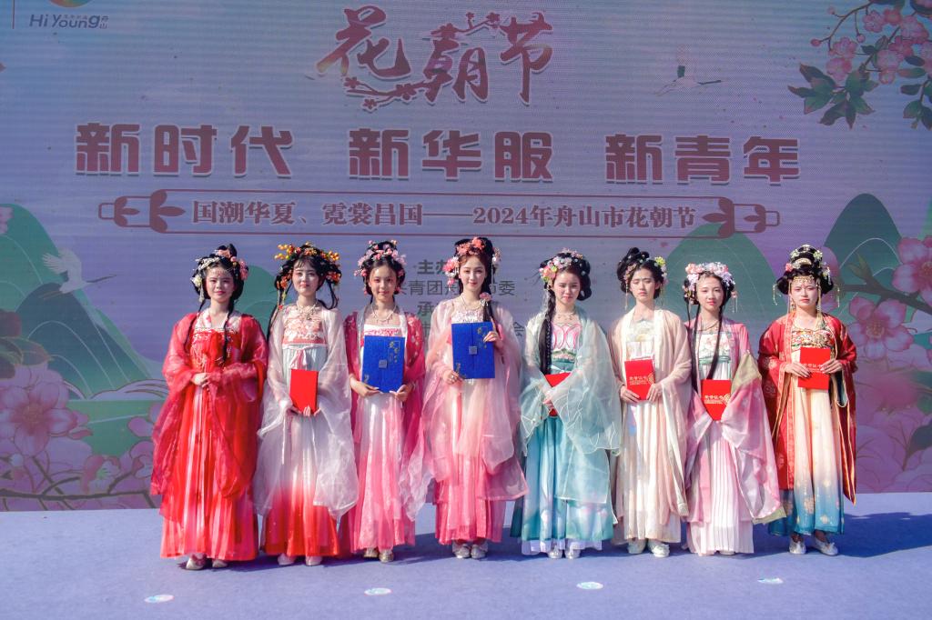 5月18日下午,舟山市的樱花公园内,花香四溢,人头攒动。由舟山市团市委主办、舟山市汉文化协会承办的2024年舟山市花朝节“花神”才艺比赛正在上演,吸引了众多市民和游客的目光。