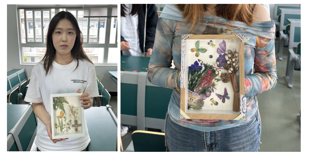 在春日来信活动中,同学们积极参与,通过各类植物、干花、干果开展创作,再辅以文字、绘画及其他创意形式,根据不同的心境制作属于自己的DIY干花作品,表达自己的情感寄托。