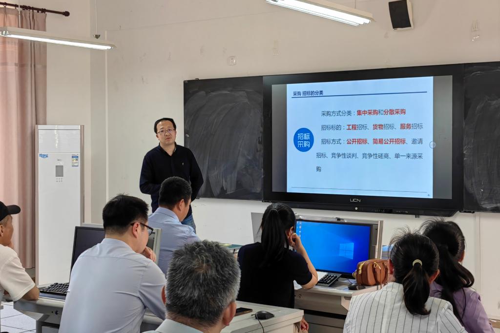 会上,后勤产业处副处长葛磊详细讲解了学校《采购与招投标管理办法》,计财处副处长张莉莉讲解并演示了教职工日常报销、国内旅费、酬金申报等报销业务。