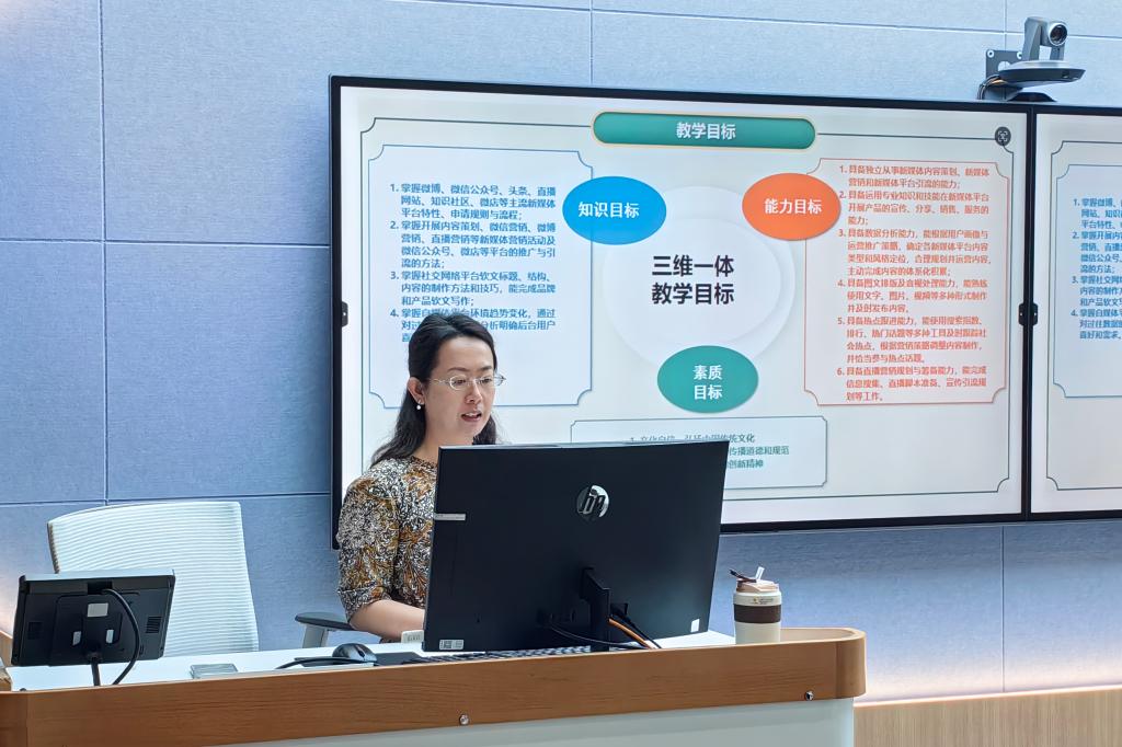 老师们从教学分析、教学设计、教学过程、教学反思等模块进行了生动说课,不仅深入剖析了各自课程的核心内容,还分享了在教学过程中的创新尝试和探索成果。经过激烈比赛,毛姝洁、陈颖燕两位老师获得学院说课比赛一等奖,将代表学院参加学校说课决赛。