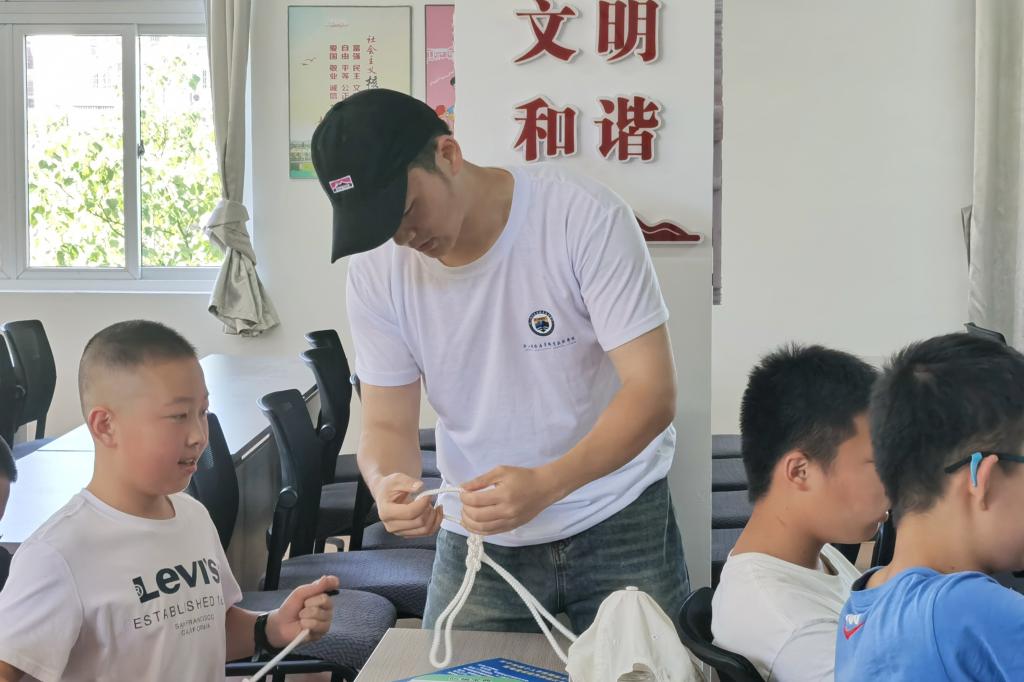 针对青少年朋友,社会实践团队开展了航海科普知识讲座。学院航海专业学生发挥专业优势,为中小学生普及航海科普知识,带领他们学习航海绳结的编织,让更多的青少年学生了解航海知识,认识海员职业,为第十四个“世界海员日”和第二十个“中国航海日”献上了一份特殊而有意义的庆祝活动。