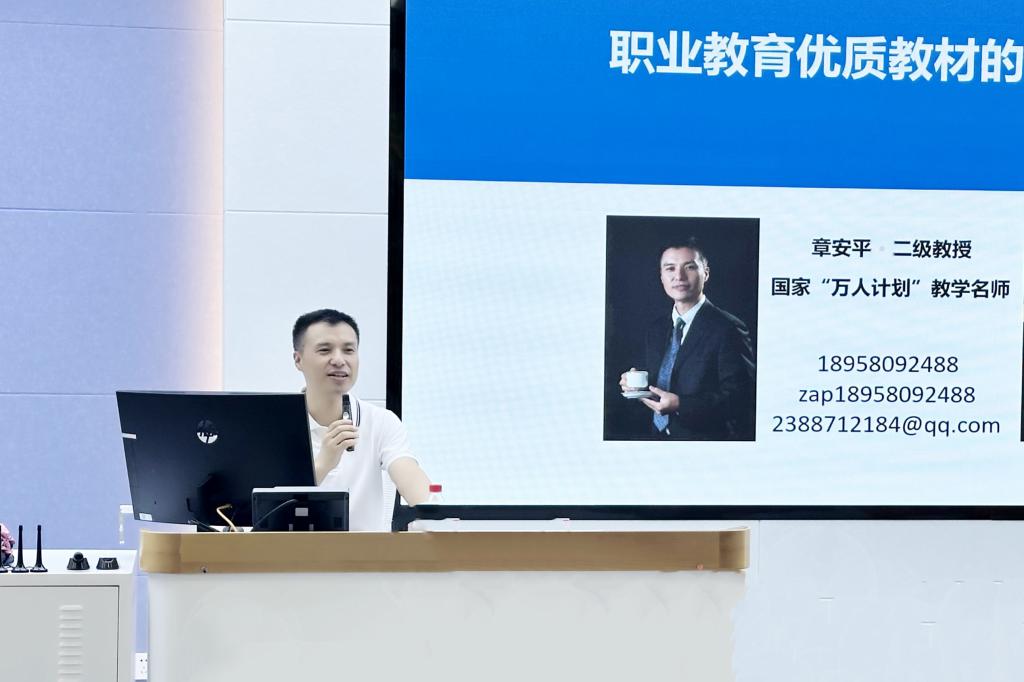 下午的讲座以“职业教育优质教材的开发和应用”为主题,章安平教授从国规和优质教材、新形态教材、数字化教材建设、教材的申报四个方面展开,分享了职业教育优质教材的开发和应用经验,讲述了如何根据行业企业需求,编写符合实际教学外;还介绍了如何结合学生的认知规律,设计符合实际教学过程的教学内容和教材。优质教材是提高教育教学质量的基础,教师应根据学生的实际需求和职业发展的要求,开发和选用适合的教材,注重教材的科学性、实用性和创新性。