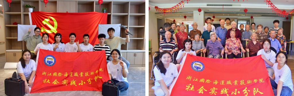 在普陀创生会养老院,实践成员们用镜头给百岁老人们拍下了一幅幅“党旗的合影”,他们耐心倾听老人们讲述过去的故事,用照片记录下他们的笑容和回忆,用留影表达了对党的忠诚和敬意。