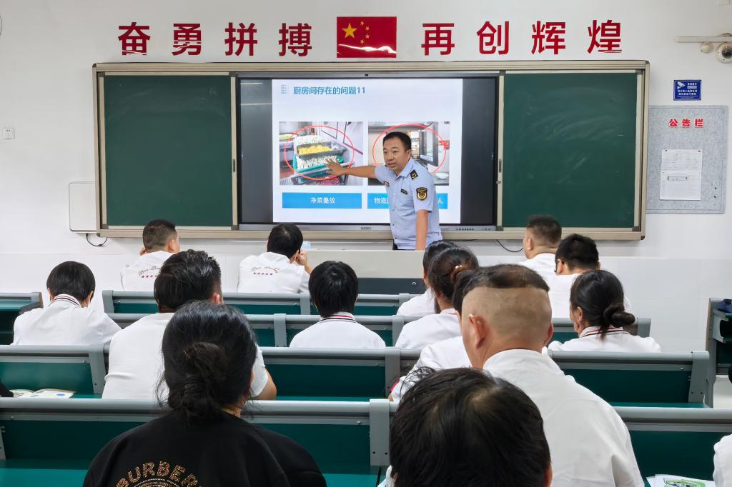 殷福祥科长就新城辖区秋季开学检查中出现的问题,从后厨操作规范、落实防鼠措施、原料贮运加工、留样规范管理等方面,并结合近期出现的相关案例进行了详细的讲解,要求学校餐饮单位要严格落实人员健康、规范操作、防鼠措施等,切实增强食品安全责任意识,落实防范措施,确保校园食品安全无事故。他还就《食品安全突发事件应急处置》、《食安法第148条解读》进行了专题培训。