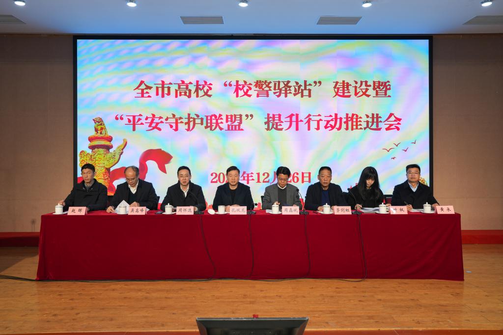 为贯彻落实全省高校“校警驿站”建设专项工作视频调度会精神,总结2021年以来全市高校“平安守护联盟”及今年6月份以来全市高校“校警驿站”建设情况,推进下步工作,12月26日下午,市公安局联合市政法委、市教育局召开全市高校“校警驿站”暨平安守护联盟提升行动推进会,我校党委委员、宣传部部长赵晖,安全保卫部部长陈增跃出席了会议。