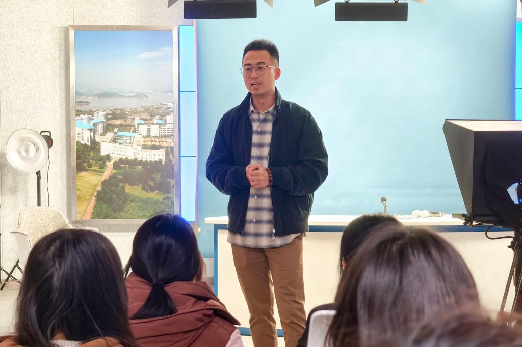 为推进学校融媒体中心队伍建设,提高学生媒体宣传组织业务能力,320日,现代港口贸易学院特别邀请了舟山市知名主持人刘井泉、普陀区融媒体中心刘吉灵以及校融媒体中心负责人金哲豪老师为34名同学进行媒体业务培训。