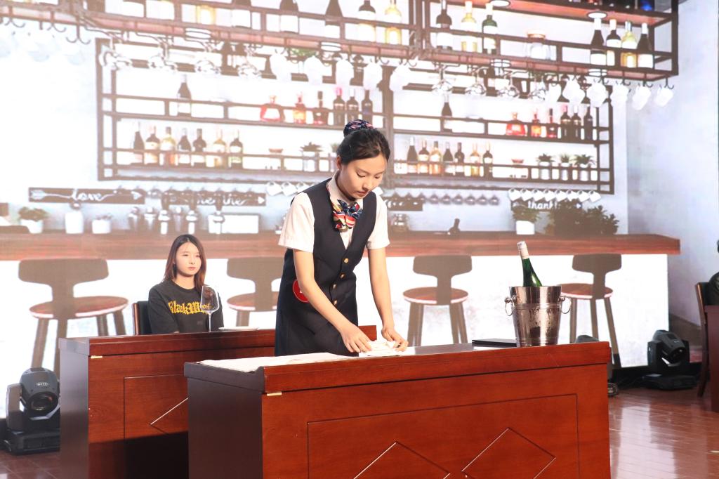 大赛设礼仪操、情景模拟、个人才艺展示三个环节。礼仪操尽显专业风范;情景模拟围绕导游、邮轮、酒店、食品检测、侍酒等服务场景,选手们从容应对;才艺展示环节,走秀、朗诵、歌唱等表演精彩纷呈,选手们各展所长。