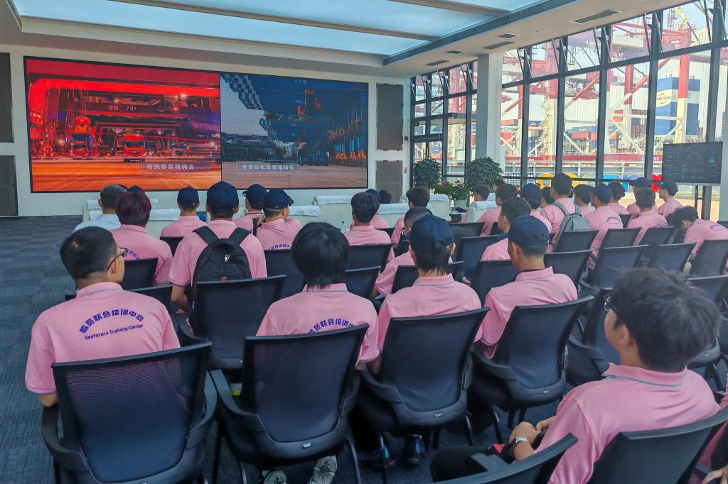 港口作为航运业的核心场景,是产教融合的重要实践载体。822日,学子们前往前湾工作船码头与青岛港全自动化集装箱码头参观学习。在全自动化码头,无人集装箱卡车、智能调度系统等前沿技术的展示,让学子们直观感受现代航运业的智能化转型趋势。企业技术骨干全程随行讲解,将港口运营管理知识融入实地教学,实现了“行走的课堂”育人效果。