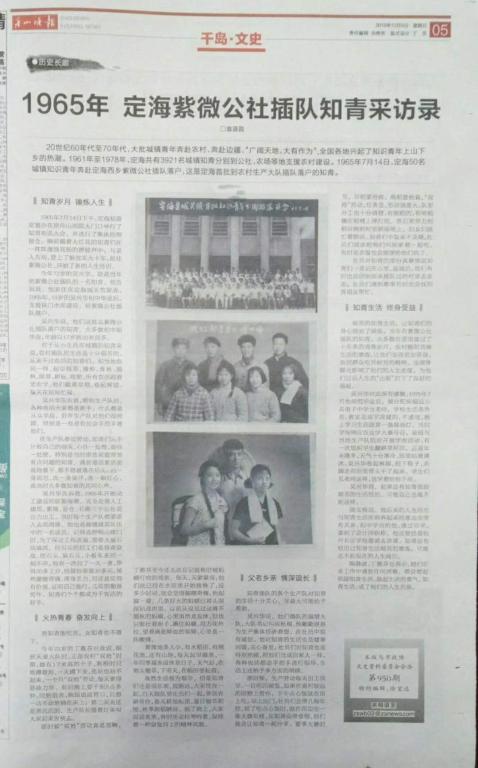 20世纪60年代至70年代,大批城镇青年奔赴农村、奔赴边疆,“广阔天地,大有作为”,全国各地兴起了知识青年上山下乡的热潮。1961年至1978年,定海共有3921名城镇知青分别到公社、农场等地支援农村建设。1965年7月14日,定海50名城镇知识青年奔赴定海西乡紫微公社插队落户,这是定海首批到农村生产大队插队落户的知青。