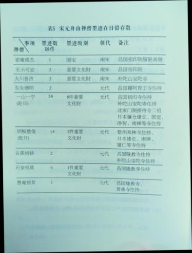 “在日本,还有458件墨迹据传为未曾赴日的宋元禅僧的作品。除去身份不详的禅僧留下的23件墨迹,另外435件墨迹作者的所属宗派及留存墨迹,例如无示可宣、大川普济、东生德明、古鼎祖铭、石室祖瑛、愚庵智及等,这些作者,俱为昌国僧,其中共有国宝级1件,重要文化财墨迹14件。”《一山一宁住持寺院(元代)沿探》这样记载。