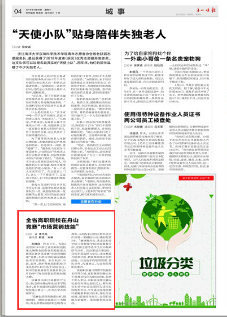 《舟山晚报》:全省高职院校在舟山竞赛“市场营销技能”