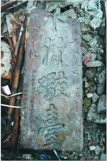 据了解,“永清炮台”碑的右方,书有“浙使者茶陵谭□麟建”,左上书“光绪六年秋”,左下有两列字体较小的落款分别为“同知衔前知富阳县事宝应”、“遇缺即补巡检”等字,左下另有“堺石”二字。