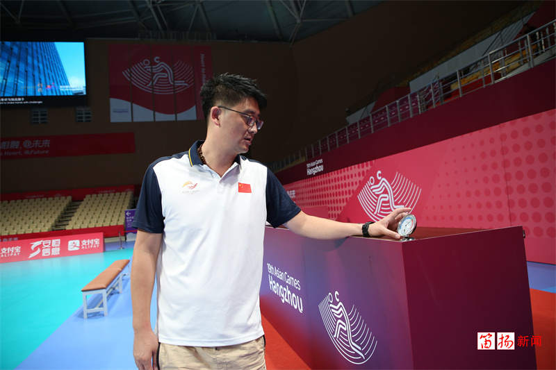 刘大炜说:“作为杭州亚运会的一名工作人员,我感到万分荣幸,一定全力以赴让场馆展现出最佳的状态,迎接各国排球运动员的到来。”