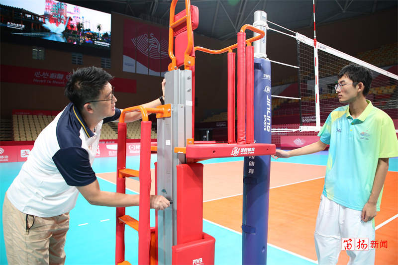 地胶是否有膨胀,球网弹性怎样,球柱高度是否标准?随着杭州第19届亚运会排球赛事的临近,作为场馆核心比赛区域的布置,有着严格的各项要求。而中国轻纺城体育中心体育馆竞赛技术运行FOP区主管刘大炜就是场馆的“布局者”。