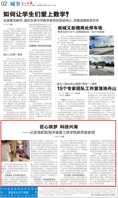 《舟山晚报》:匠心筑梦 科技兴海 ——记浙海职院海洋装备工程学院教师苗家明