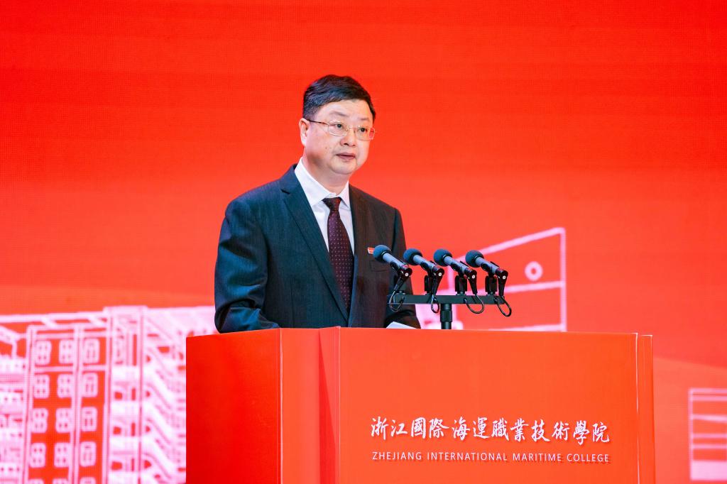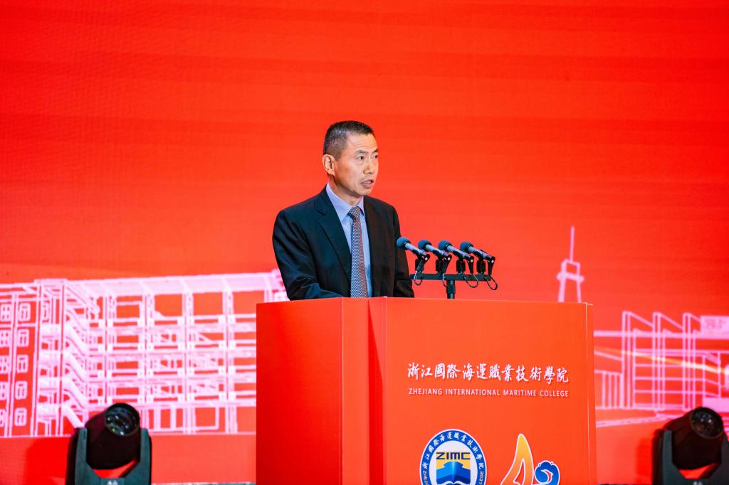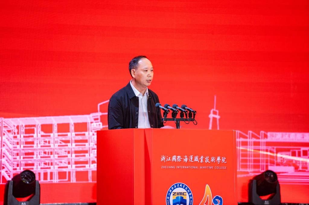 浙江省教育厅副厅长陈峰代表省教育厅对学校40年艰苦办学取得的成绩给予了充分肯定。海运人扎根海岛、坚守海洋、艰苦奋斗、勤勉务实,为社会培养培训了20余万名技术技能人才和高素质劳动者,为我国的港航、物流、石化等行业作出了重要的贡献。同时希望学校要以40年校庆为新的起点,进一步分析形势、明确方向、找准赛道、谋划思路,争取在新一轮高等教育发展大潮中争先进位。并对学校下一个40年的发展提出了深刻而精辟的四点建议:第一、开拓国际视野。学校要做强做优国际这一特色,推进高水平对外开放和交流,不断学习借鉴国际先进教育经验、引进优质教育资源,加快国际化人才培养,努力建成高等教育国际化的高地;第二、坚守海运特色。国家高等教育人才培养的数量和质量还无法满足海洋强国战略的需要。学校要胸怀国之大者,从国家战略和经济社会发展出发,始终坚守海字号高等院校的办学目标和办学特色,切实把涉海类专业办好办强,努力打造人无我有的新优势、新品牌、新高峰;第三、发扬技术优势。学校要紧密跟踪生产第一线的现实需求和发展趋势,不断改进教育教学方式和人才培养模式,更加突出职业实践能力、职业适应能力、职业创新能力的培养;第四、涵养大学气派。学校要按照大学的规格、标准和要求办学治校,全面提升内部治理水平,全面加强学科专业建设、全面优化人才培养体系。祝愿学校进一步增强自信自立自强精神,进一步用好港口这个最大的资源”“开放这个最大的优势,早日建成高水平职业技术大学。