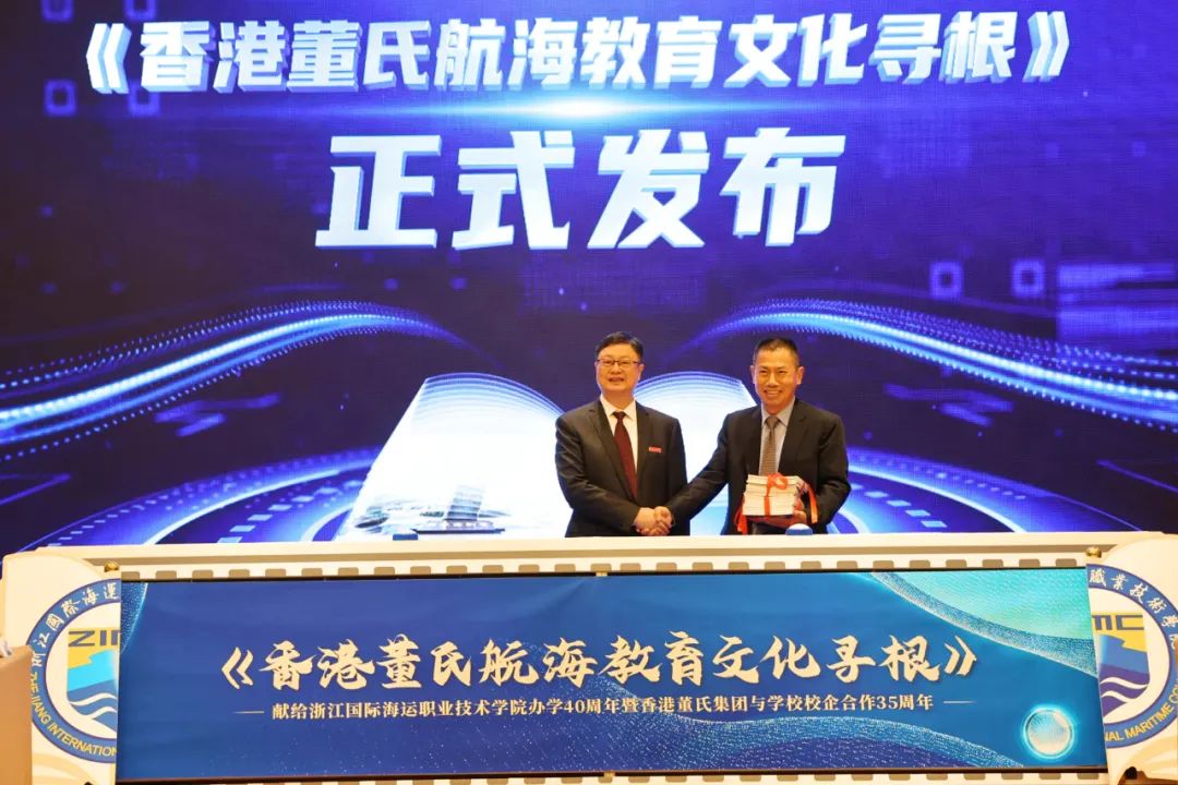 咨询会设置了一个意义非凡的特殊环节——《香港董氏航海教育文化寻根》画册首发仪式。党委书记苏为泽代表学校衷心感恩董氏集团给予学校不遗余力全方位的支持,赞佩董氏家族捐资助学、造福桑梓、投身航海教育事业的炽热情怀。苏为泽和香港董氏集团代表刘建淸共同启动画册首发仪式。学校精心整理编撰这部画册,用图文并茂的方式记录了董氏集团和学校校企合作35年的交流往来,深刻缅怀了一代船王董浩云先生对航海教育事业的执着,生动回忆了董建华先生亲自推动家乡航海教育事业发展的义举。