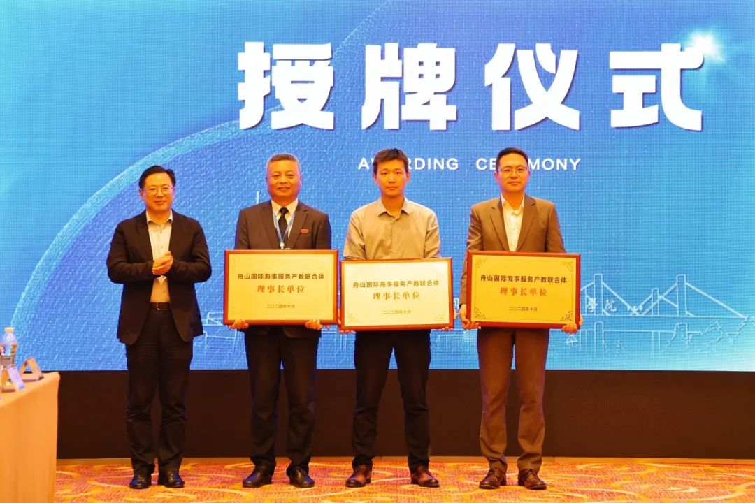 舟山市委教育工委副书记、市教育局党委书记、局长陈海波为江海联运产教融合共同体和舟山国际海事服务产教联合体授牌。学校作为牵头单位之一,政行企校联合促成人才培养、创新创业、产业经济高质量发展。成立行业产教融合共同体和市域产教融合联合体标志着深化现代职业教育体系建设改革“一体两翼”的开展与落实。