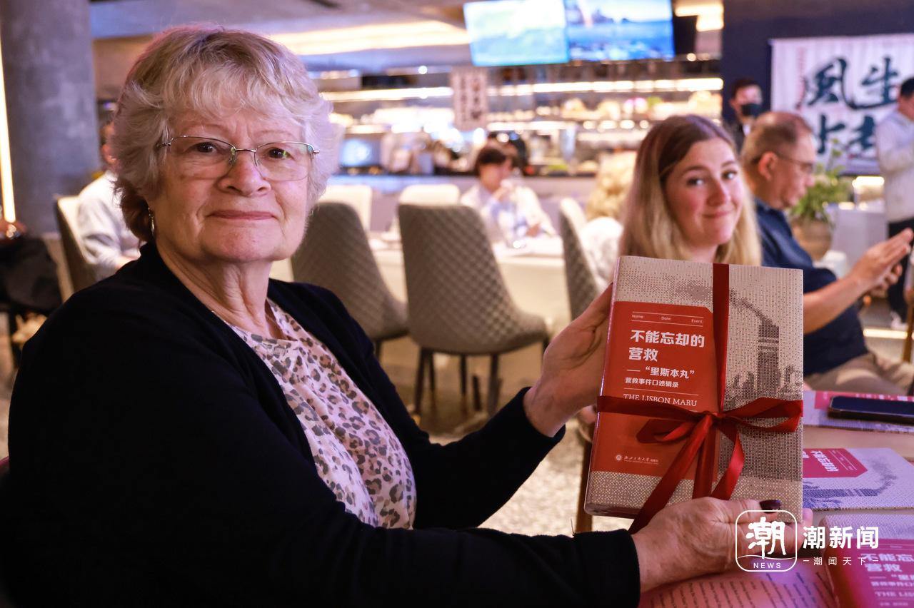“里斯本丸”沉船事件幸存者莫利的女儿维尼向记者展示获赠书籍。