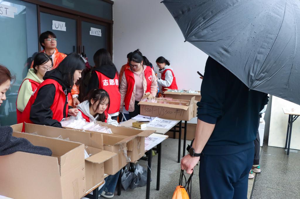 4月12日,赛事首日,突降风雨,给大赛带来了不小挑战。“海小豚”志愿者们不畏风雨,坚守岗位,为选手们提供签到引导、物资发放等贴心服务,为选手们在风雨中注入了温暖与力量。