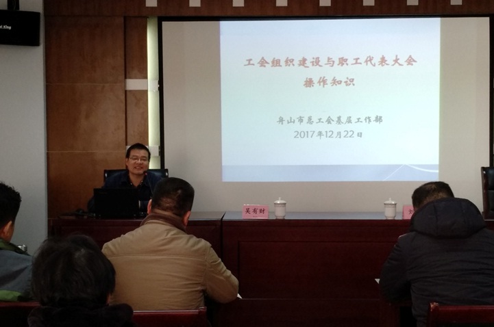 上午的培训在行政楼401会议室举行。与会人员认真听取了市总工会组宣部部长吴有财关于《工会组织建设与职工代表大会操作知识》的专题培训。培训讲解了中央对新时期工会工作的定位和要求、工会的组织类型、组织架构、管理原则等,紧贴工会实际工作,既有理论知识,又有实用案例,对如何做好工会工作及进一步提高工会干部综合素质,起到了较好的指导和促进作用。