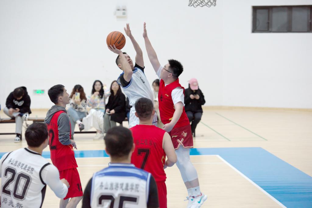 在下半场比赛中,我校队员不甘示弱,一直内突外投,积极争取反超,赛况一度呈胶着状态。旅健院队员依靠积极防守,步步为营,稳中求胜,最终以微弱优势获胜。