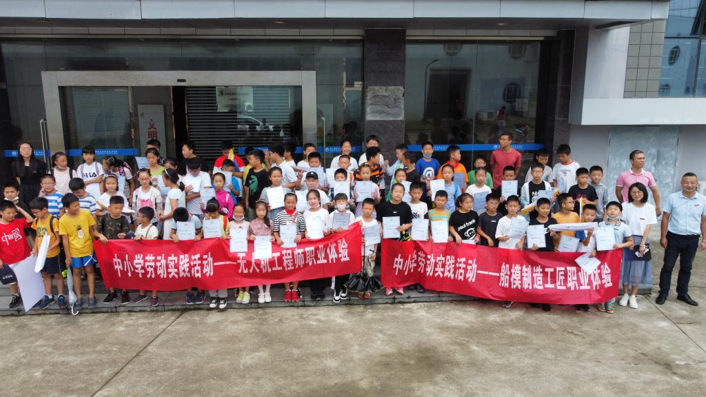 活动中,小工匠们通过动手实践,学习无人机结构原理,进行无人机编程与操控;感受现代造船工艺与传统木船制作技艺的非遗传承,在党员教师和大学生志愿者们手把手的悉心帮带下,小朋友们亲手完成了作品,获得了“无人机小工程师”和“船模制造小工匠”和荣誉证书。体验劳动乐趣,开启职业梦想,通过职业体验活动,在青少年心中播下了职业报国、科技强国的种子,献礼祖国华诞。(图文/卓宏明)