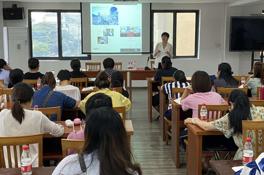 培训课上,吴蓓、郑堃老师从品牌认知、职业素养和网络平台规则到直播设备的准备与操作、直播实操技巧、直播形象打造等方面进行了形象生动的讲解,帮助学员快速学习掌握网络直播技能。