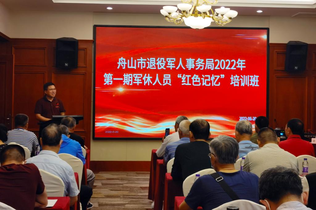 为迎接党的二十大召开,进一步增强军休人员退役不褪色的政治意识,6月20日,由舟山市退役军人事务局委托我校马克思主义学院承办的2022年度“红色记忆”培训班第一期在定海顺利开班。50位退役军休人员参加了为期一天的培训。