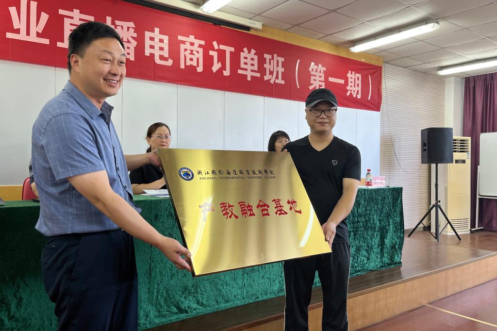 此次培训是在新修订《职业教育法》颁布后,我校在职业培训领域又一个方向的展示。开班仪式上,由夏志刚副校长为舟山市美线网络科技有限公司授“产教融合基地”牌匾,双方就直播电商订单班开展合作,立足舟山社会培训市场,涉及电商直播等行业,发挥各自优势,通过几年努力,打造出全市优质的社会劳务品牌,使其具有一定的社会影响力。