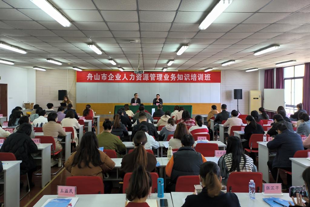 3月28日-29日,受舟山市人力资源和社会保障局委托,舟山市企业人力资源管理业务知识培训班在我校顺利举行。舟山市人力资源和社会保障局劳动关系处处长郭凯舟出席开班仪式并作动员讲话,96名从事人力资源管理工作的企业负责人及经办人员参加培训。