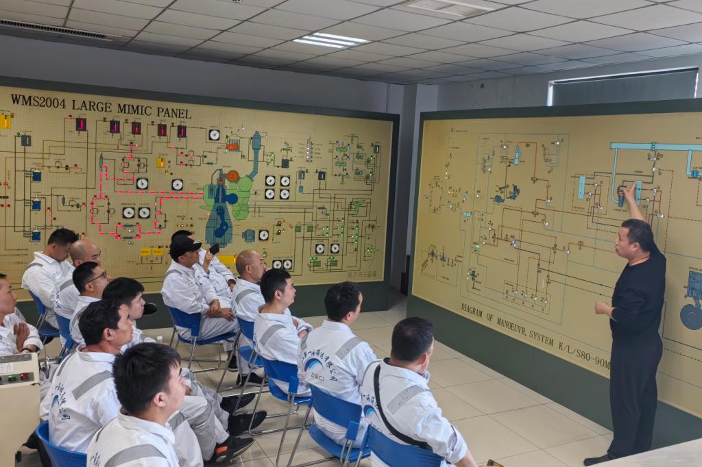 航海工程学院抽调专业师资分别与公司海务、机务主管进行了深入沟通,充分利用校内航海模拟器、轮机自动化机舱、虚拟仿真基地等实训设施设备,新开发了封闭舱室演习、船舶进江应急避碰、人员急救、航海英语、轮机新技术等培训项目并首次启用虚拟仿真中心的模拟软件开展了电喷柴油机新技术培训。