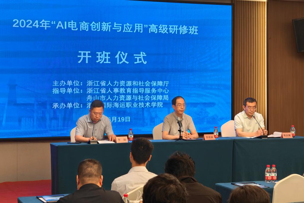 6月19日-21日,由浙江省人力资源和社会保障厅主办、浙江省人事教育指导服务中心指导,我校现代港口贸易学院承办的“AI电商创新与应用”高级研修班在定海顺利举办。此次研修班旨在深化电商领域人才对生成式人工智能技术的理解和应用,共有来自全省各相关单位从事电商管理的干部及相关企业经理共48名学员参加。学校现代港口贸易学院副院长柏昌顺担任开班仪式主持人,舟山市人力资源和社会保障局专业技术人员管理处处长吴培新、现代港口贸易学院党总支书记李刚出席开班仪式。