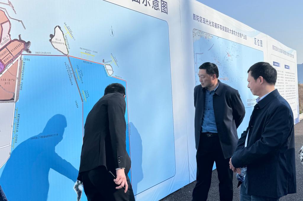 在舟山万洋众创城项目负责人及企业代表的陪同下,夏志刚副校长一行深入企业车间,实地参观了生产线,还前往普陀区现代双循环零碳国际大食物大生物产业园建设现场,详细了解了该产业园的建设情况以及规划。